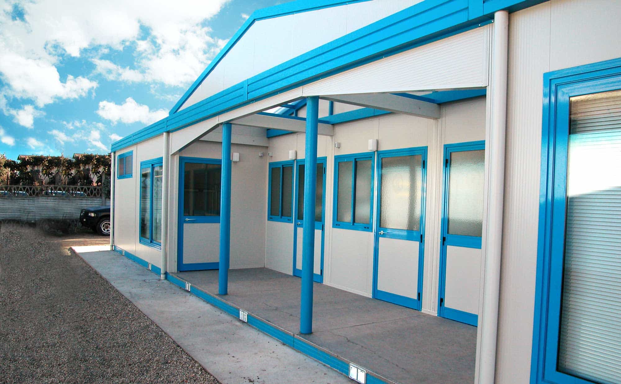 Moduli PrefabbricatiMonoblocchi singoli, allineati o sovrapposti tra di loro. Sono concepiti per ambiti industriali e di cantiere, sia nel settore pubblico che in quello privato. Uffici, guardiole, bagni, box cantieri, shelter.